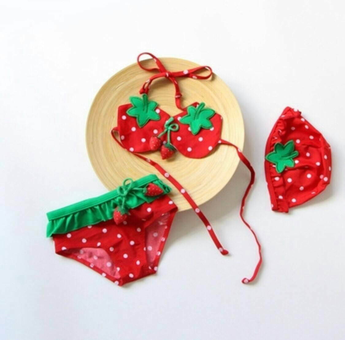“พร้อมส่ง” ชุดว่ายน้ำเด็ก บิกินี่ลาย strawberry น่ารักกกก.... เนื้อผ้าดี สีแดงสดใส แนะนำเลยค่ะ MUST HAVE!!!