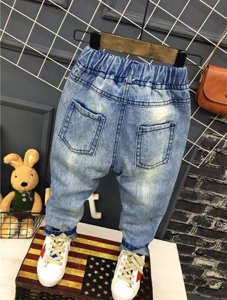 สุดฮิต ยอดนิยมตลอดกาล กางเกงยีนส์เด็กแนว พร้อมส่ง งาน import พรีเมี่ยม ผ้ายีนส์แท้แบบไม่แข็ง สวมใส่สบาย เอวยางยืด สกีนลาย แต่งขาดๆ ที่กำลังได้รับความนิยมในขณะนี้ ไม่ว่าจะใส่คู่กับเสื้อยืด เสื้อโปโล เสื้อเชิ้ต ก็ดท่สุดๆ ขายดีมาก อย่ารอช้า Shop Now!!!