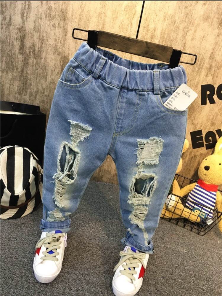 สุดฮิต ยอดนิยมตลอดกาล กางเกงยีนส์เด็กแนว พร้อมส่ง งาน import พรีเมี่ยม ผ้ายีนส์แท้แบบไม่แข็ง สวมใส่สบาย เอวยางยืด แต่งขาดๆ เซอร์ๆ ที่กำลังได้รับความนิยมในขณะนี้ ไม่ว่าจะใส่คู่กับเสื้อยืด เสื้อโปโล เสื้อเชิ้ต ก็ดท่สุดๆ ขายดีมาก อย่ารอช้า Shop Now!!!
