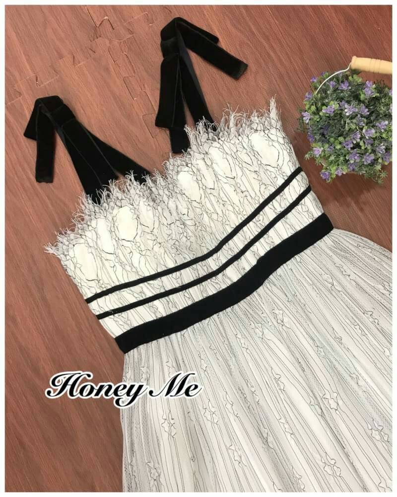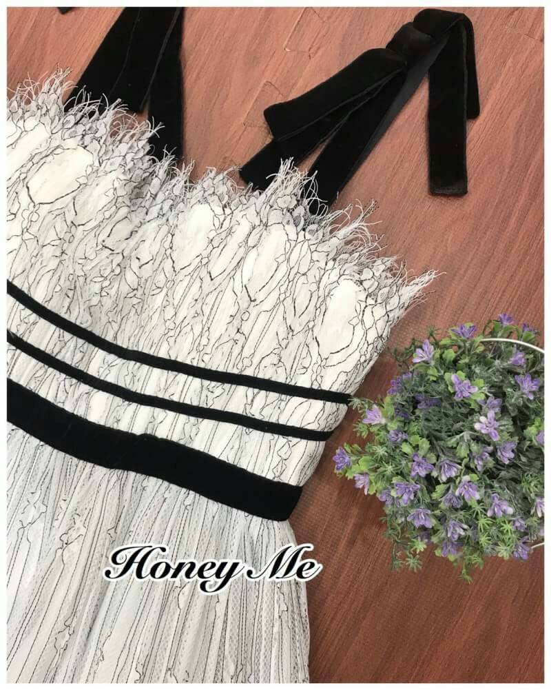 Detail : 🎀 คุณนู้คุณหนูมากค่ะ ชุดนี้🎀เดรสสายเดี่ยว ใช้ผ้าซีทรูทอลายดอกขาว/ดำ สายเดี่ยวใช้ผ้ากำมะหยี่สีดำ แต่งโบว์ที่สายทั้ง2ข้าง อกเสริมฟองน้ำ แต่งแถบผ้ากำมะหยี่สีดำ ทีเอวและช่วงอก ช่วงกระโปรงทรงบาน เล่นเลเย่อร์2ชั้น ทำให้กระโปรงดูพองๆค่ะชายกระโปรงปล่อยตามลายผ้า แต่งซิปหลัง